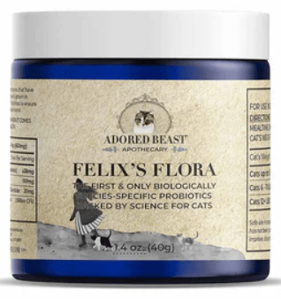 Felix’s Flora by Adored Beast is a species-specific probiotic supplement designed exclusively for cats. This daily powder blend helps support healthy digestion, immune function, and overall wellness through carefully selected probiotic strains and natural nutrients.