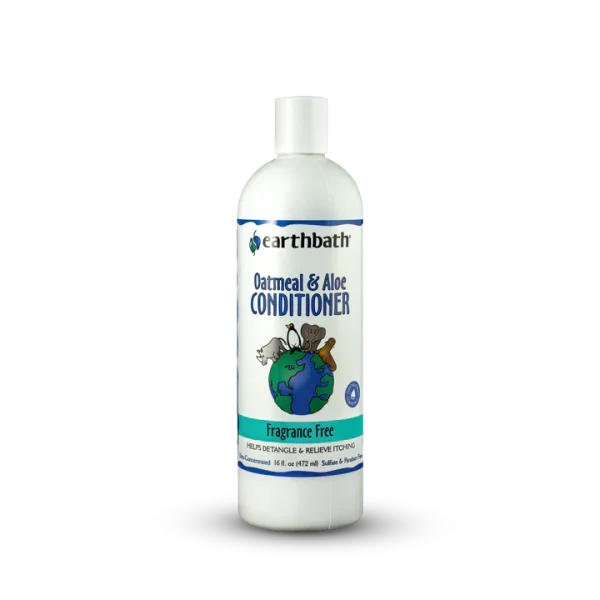 Earthbath proudly formulated this shine enhancing Fragrance Free Oatmeal & Aloe Conditioner to effectively detangle, enrich and revive your pet's coat. The addition of colloidal oatmeal and organic aloe vera help re-moisturize and soothe itchy, dry skin. This fragrance free formula is specially blended for pets with sensitive skin and allergies. It will leave their coats soft and plush while bringing out their natural luster and brilliance. Used in conjunction with Earthbath Oatmeal & Aloe shampoo, your pet's coat will look and feel better than ever before. Will not wash off topical flea applications. Safe for all animals over 6 weeks.