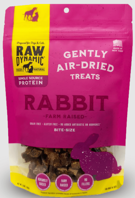 Raw Dynamic Air-Dried Rabbit Treats deliver clean, species-appropriate nutrition in every bite. Made from 100% premium rabbit, these treats are gently air-dried to lock in natural flavor, nutrients, and protein.